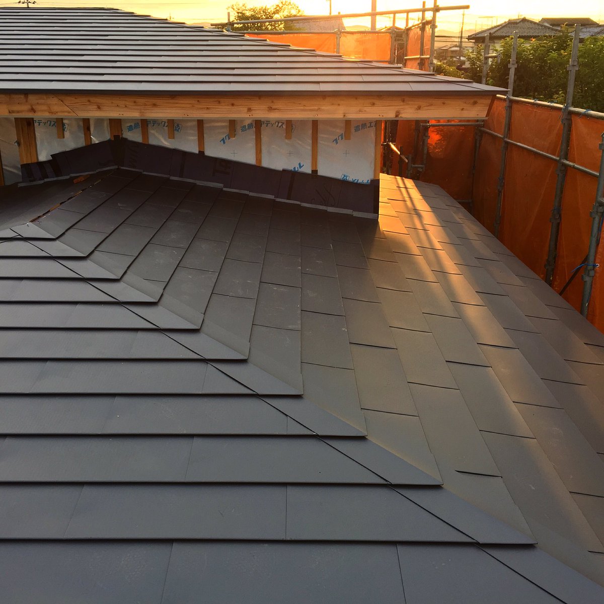 岳設計工房 Twitterissa 緩い勾配の平噴き屋根 ウロコの様な表情になりました 下り棟を被せずに済み よりシャープで より美しく感じます 屋根 寄棟 板金 設計事務所 岳設計工房 佐野市